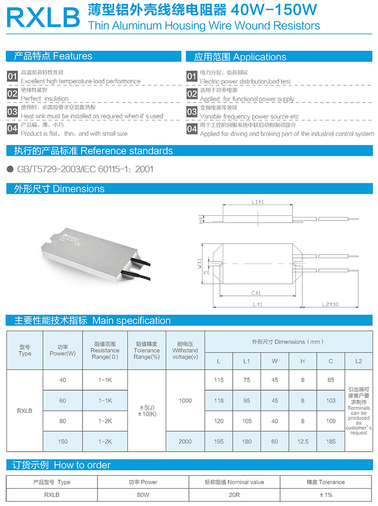 RXLB薄型铝外壳线绕电阻器